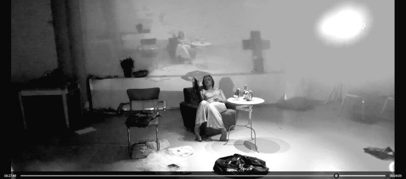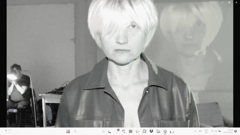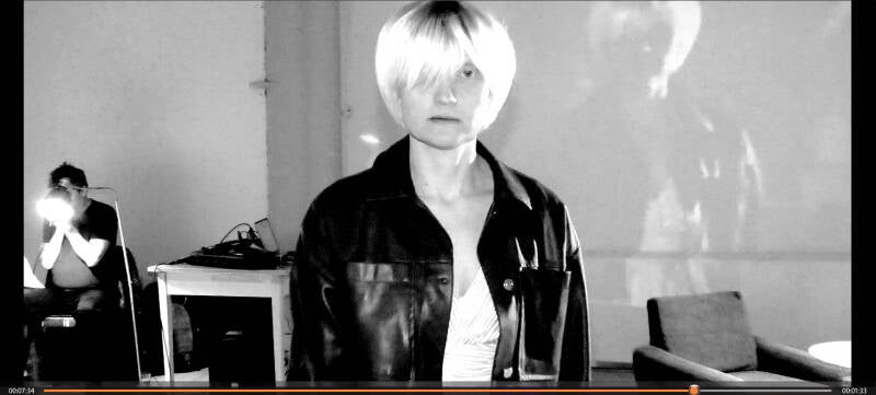 jUngFRau ist ein stetig Llve-kamerabegleiteter turbulenter, facetten- &, objektreicher inszinierungsrausch durch den weissen, weitläufigen, unbeschriebenen säulenraum der Kunsttankstelle Ottakring.